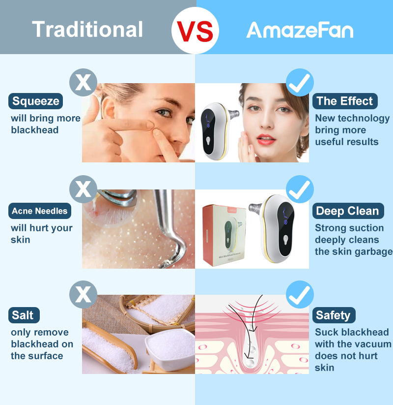 Effective and safe: The blackhead vacuum cleaner uses innovative vacuum adsorption technology and will not harm your skin. This blackhead cleaning tool is more convenient and effective than using a mask or acne needle.